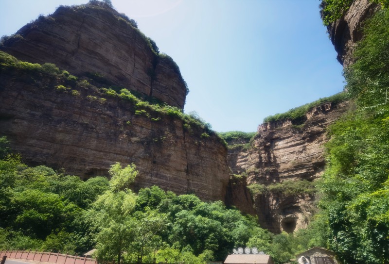 两侧峡谷对面立,悬崖峭壁刀斧劈,