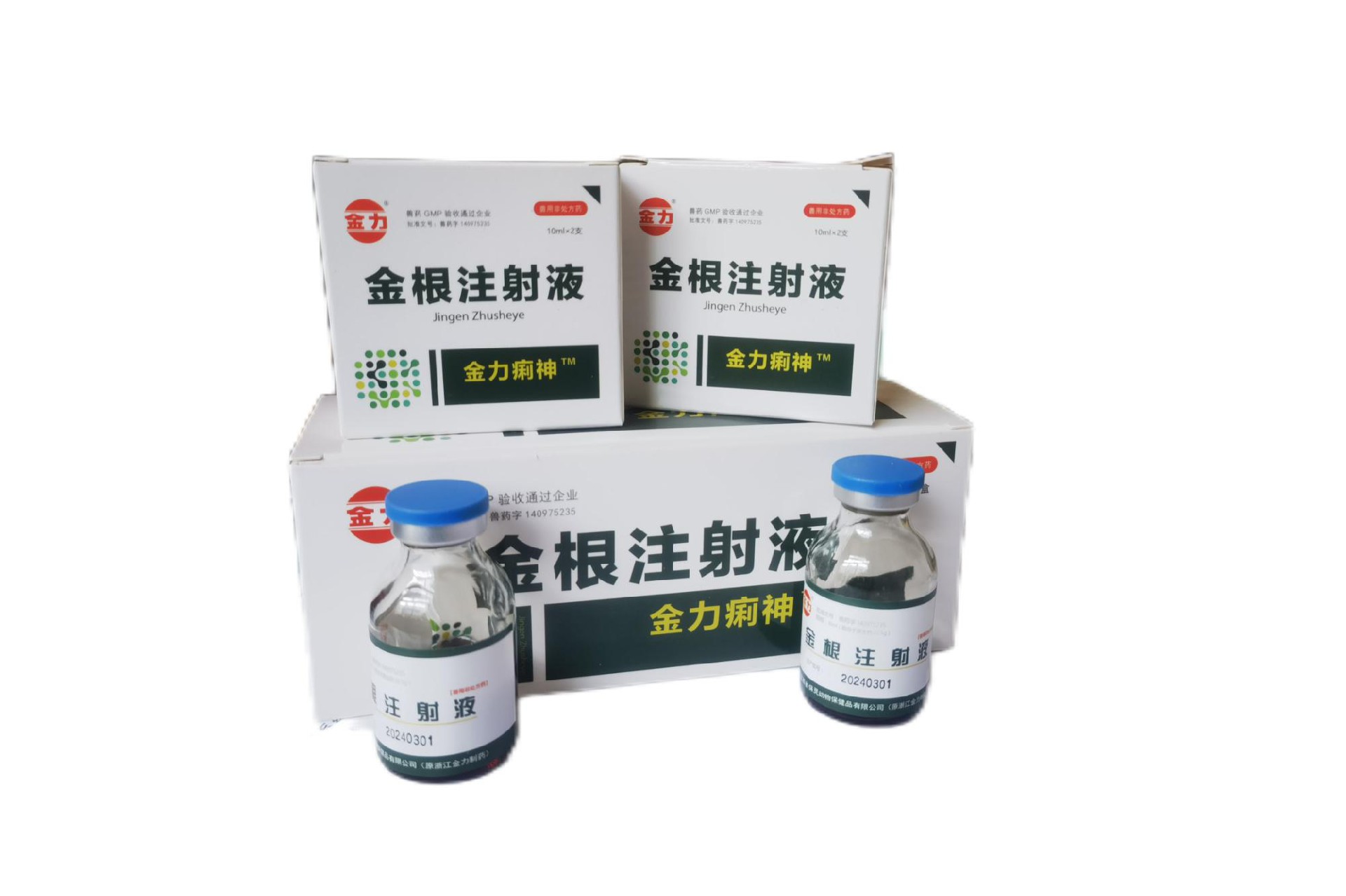 【兽药名称】通用名称:金根注射液